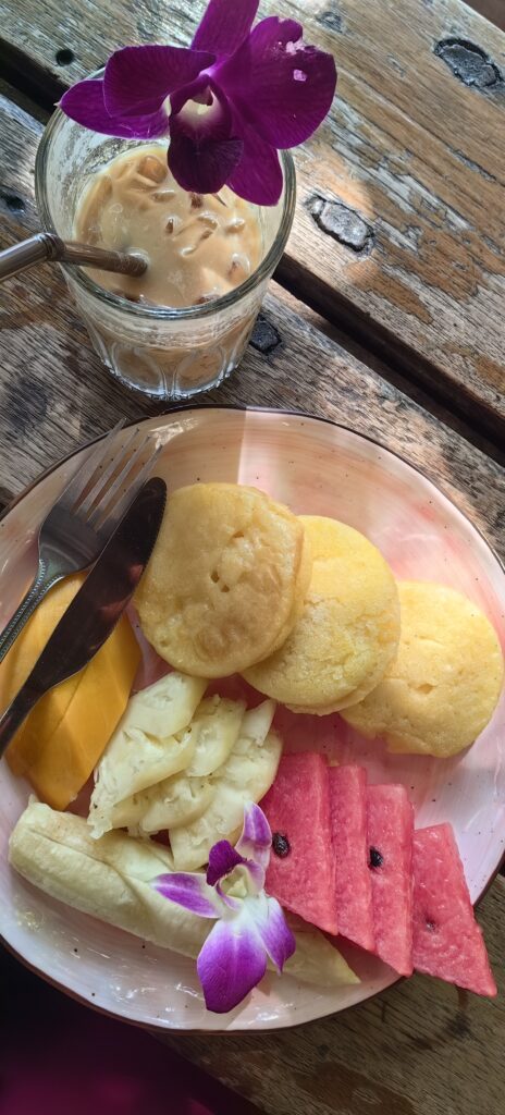 Para ponerlos en contexto dinero la moneda es el Bat Tailandés y un dólar son poco mas de 35THB. Un desayuno ahí era a razón de 150THB (super completo y con café) y eso que era un lugar un poco más “caro”. Si no, se pueden encontrar buenas ofertas de desayuno completo por unos 80/100THB.