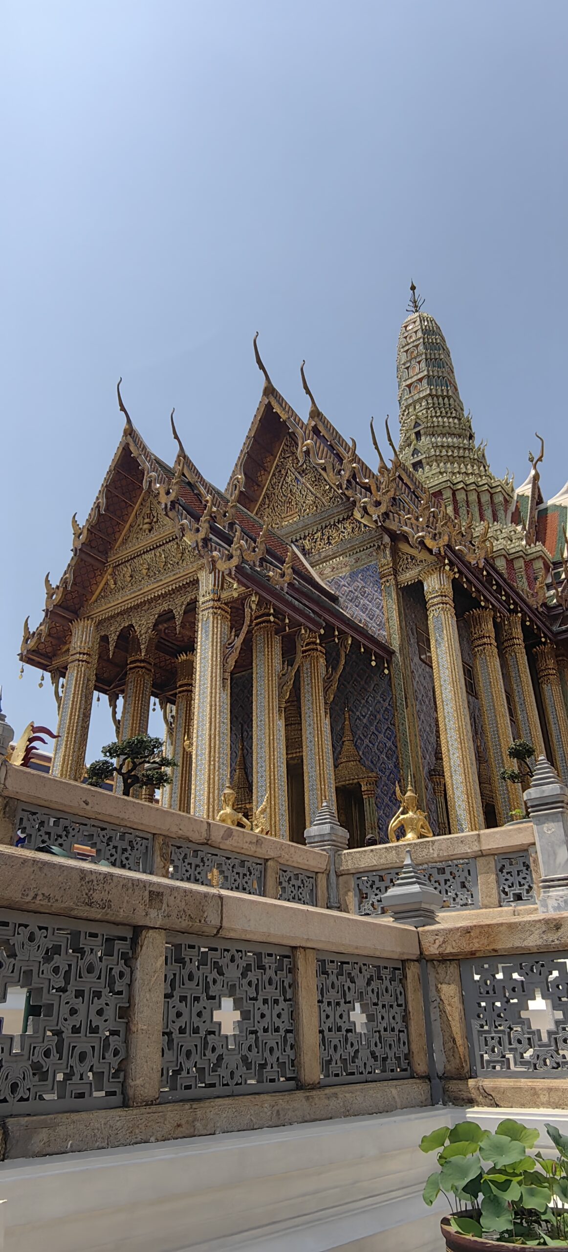 Fuimos temprano (aunque igual hacía muchísimo calor) primero al Templo del Buda de Esmeralda. El ticket vale 500THB e incluye este templo, el Grand Palace y el Museo de Textiles (al que no fuimos). Lo compramos ahí mismo en la boletería sin tener que esperar mucho, y así es en todos los templos. No hace falta sacarlo online. En mi opinión éste es el más lindo y deslumbrante. Con mi amiga nos paramos a ver cada detalle esculpido en las paredes. Con distintas formas y materiales. Todo lleno de colores y brillos. También las pinturas en las paredes que lo rodean, donde podés ver cómo ellos veían el mundo, sus hazañas, los problemas cotidianos, todo cual libro ilustrado para chicos que continúa en todo su largo. Está muy bien conservado todo. Dedicamos también un buen tiempo a sacar fotos ahí (gran spot). Luego pasamos al Grand Palace que está al costado, también muy impresionante.