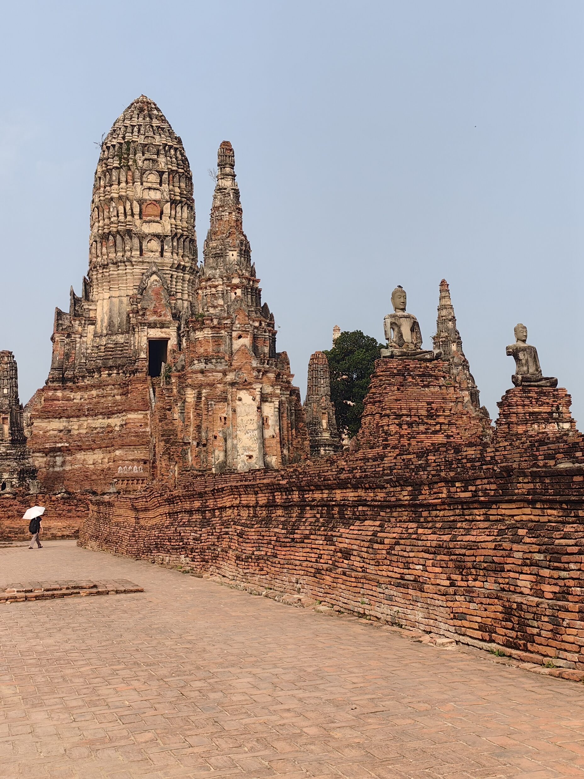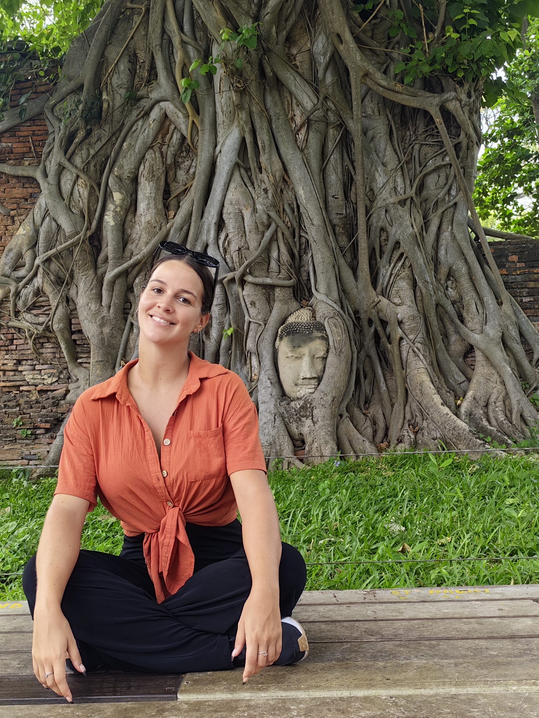 Al otro día, hicimos una excursión a Ayutthaya que compré por la pagina Get Your Guide y aca les dejo el link. Ésta fue la capital tailandesa por 417 años y es ahora Patrimonio de la Humanidad. Salimos del punto de encuentro previamente pactado, muy temprano. Hicimos un viaje de una hora hasta allá, y visitamos los templos Wat Chaiwatthanaram, Wat Lakayasutharam (con el Buda reclinado), Wat Phra Sri Sanphet y Wat Maha That (con la famosa cabeza de Buda enredada dentro de un árbol que se ve en la foto). Son templos muy antiguos y muy desgastados por las guerras y el clima, lo que los deja muy distintos de apariencia a los de Bangkok. Pero recomiendo aun así ir a visitarlos y con un guía que explique la historia del lugar y le ponga sentido a las ruinas que se ven. El guía que nos tocó fue genial! Sabía mucha información e hizo todo el paseo aún más interesante. Esta excursión dura 8 horas aproximadamente e incluye almuerzo en un lugar local muy rico. Salió todo a horario y muy bien organizado. Incluso tuvimos tiempo para recorrer cada templo a nuestro gusto y después seguir. Agotador con el calor que hacía pero muy interesante!