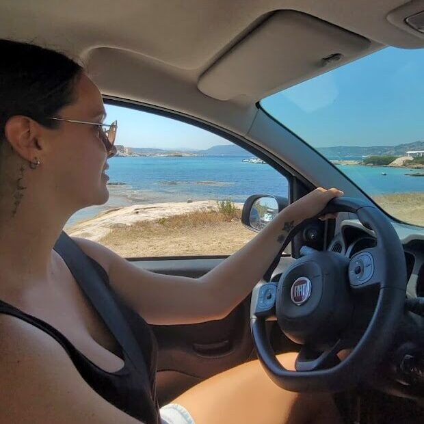 Yo llegué al aeropuerto de Olbia (pueblo que no visite la verdad porque no me lo recomendaron, es más la ciudad donde se hacen mandados) y ahí había reservado un auto con Booking en la compañía Surprise. La mayoría de los autos que se alquilan son manuales. Me salió 35 euros por día. Tuve que ir de ahí a Palau, donde me iba a quedar, de noche lo cual aunque fue un viaje de sólo una hora no fue sencillo ya que las rutas de ahí son algo peculiares. No me pareció peligroso pero sí los caminos son muy angostos (los internos más todavía) y los autos andan muy rápido por más de que la máxima es de 50km por hora. Tienen mucha curva y contracurva y no hay UNA luz (todo el mundo usa las altas hasta que viene alguien de frente y hay que apagarlas y prenderlas después de que pase). Así que recomiendo ir con cuidado si no los conocés, incluso de día.